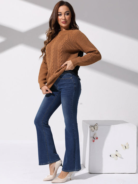 70s Retro High Waist Patch Pocket Stretch Flare Jeans