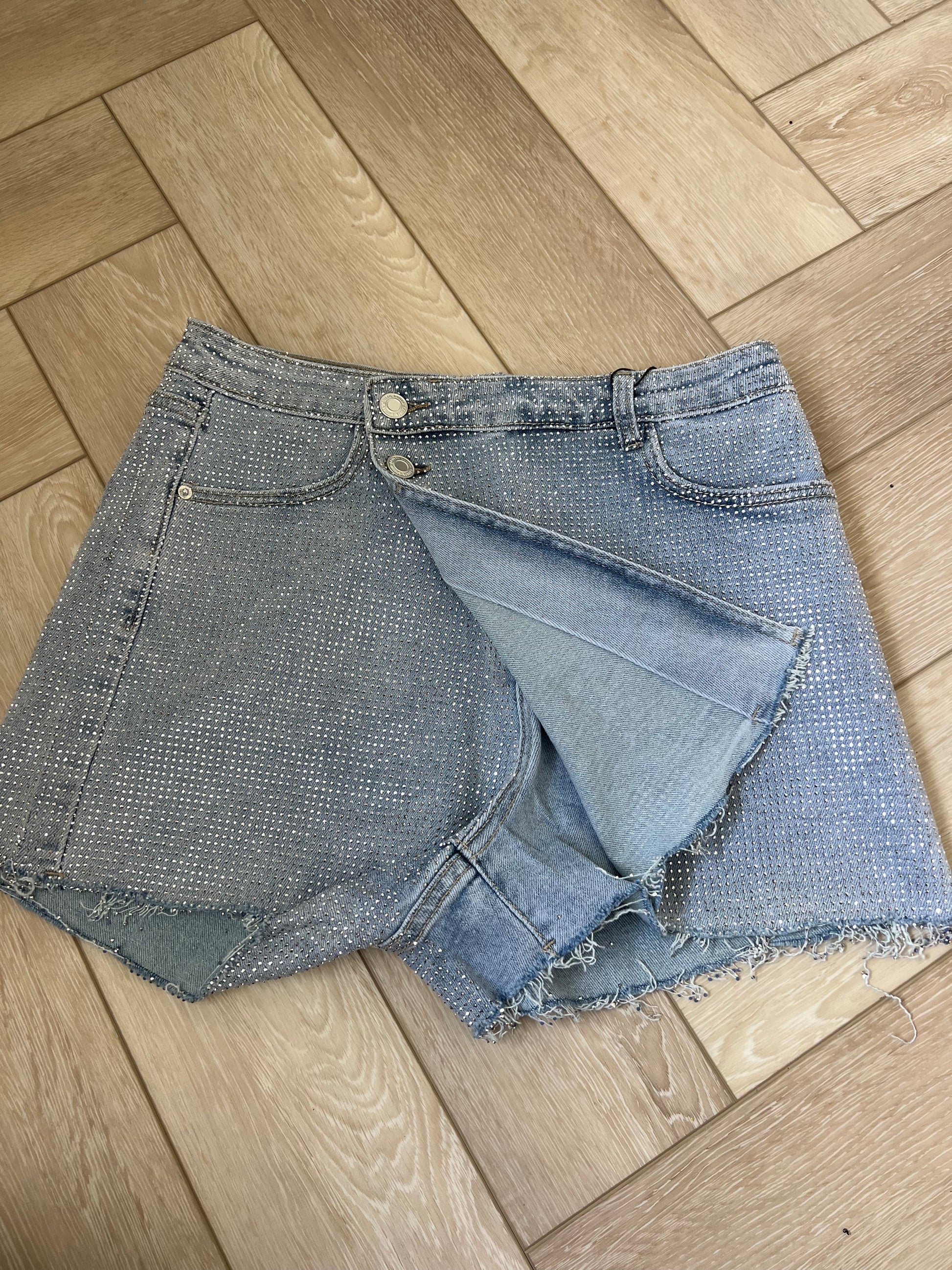 Make a bold statement in our Blue Diamanté Skirt, designed for both style and comfort. Featuring a skirt front and shorts back, this piece gives you the best of both worlds—with all the sparkle you could ask for.
